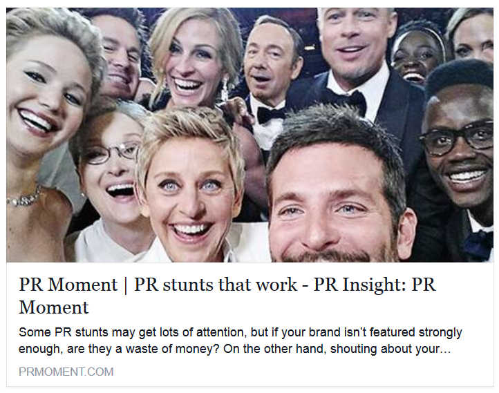I was in good company this week when I was asked to comment by PR Moment on “PR Stunts that work:” I didn’t have much to say about stunts, but I comment on how to make statements that get noticed: