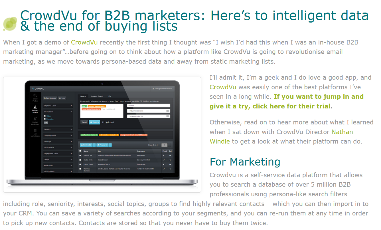 2. You may have really clever product names, but unless you are a very well known brand I am willing to bet that your product names will not mean that much to most people outside of your organisation. Describe your product and solution and make sure you don’t litter your press releases and award entries with too many product names. Same goes for your website. From an SEO POV, you’d be better off frequently using the commonly used category name for your offering, helping you to own that category in search results.